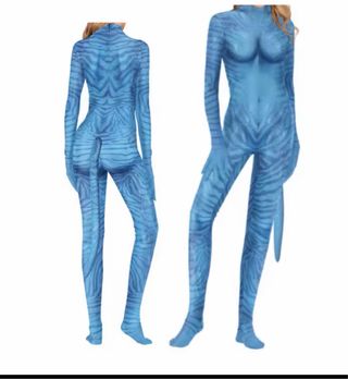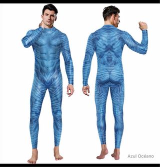 Disfraz completo con diseño inspirado en Avatar. Ideal para fiestas temáticas o eventos. - Diseño de cuerpo entero. - Estampado azul y multicolor. - Tejido elástico.