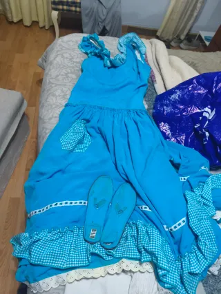 Traje de flamenca rociera azul