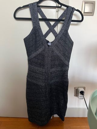 Vestido brillante, ideal para fiestas y eventos. Muy atrativo y modela perfectamente en el cuerpo. Marca bebe del Estados Unidos. - Diseño cruzado en la parte superior. - Tejido elástico con acabado metalizado.
