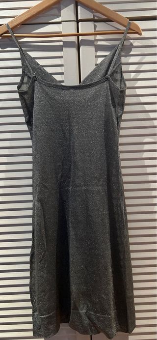 Vestido de fiesta de ZARA con un diseño brillante. - Tejido con detalles plateados. - espalda abierta - cierre lateral