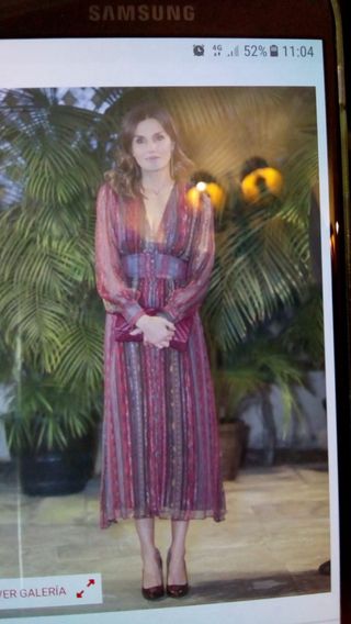 Vestido midi de la marca Intropia, estampado. - Diseño midi. - Estampado. - Manga larga transparente. - Vestido con forro. - Escote en V. - 80% seda 20% fibra metálica (forro 100% polyester)