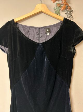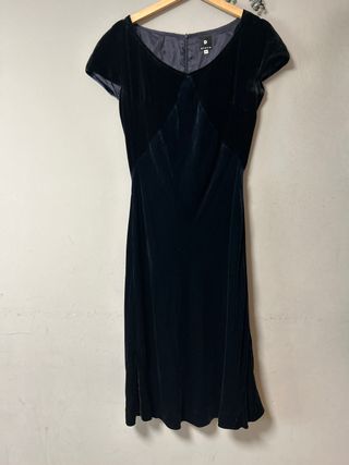Elegante vestido de fiesta confeccionado en terciopelo. - Diseño de corte midi. - Manga corta. - Escote en V. -