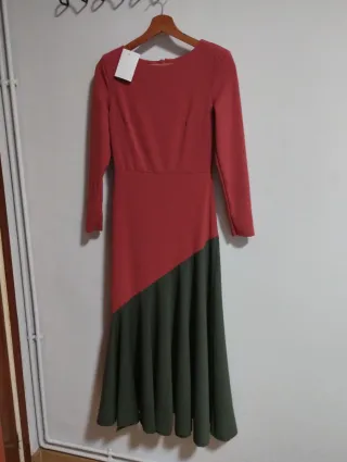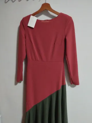 Vestido bicolor midi. Marca Moitte modelo Galatea. Tela elástica. Talla única (para tallas 34 a 40). Corte asimétrico en la falda. Ideal fiesta, boda, celebración. SIN ESTRENAR. Costó 60€.