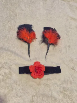 Disfraz de cabaret estilo can-can en llamativo color rojo. Perfecto para fiestas temáticas o eventos especiales. La talla puede valer para la 42 y la 44. Sin accesorios 20 Se vende con todos los accessoris de las fotos - Diseño con volantes y detalles. - Acabado satinado brillante.