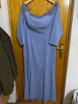 Vestido largo fiesta azul plumas