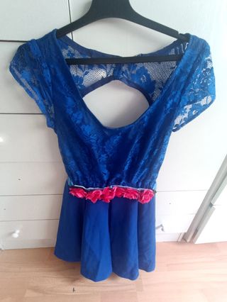 Vestido fiesta,color azul ,con cinturon de rosas rosa,escote en espalda,con ballenas para el pecho,fiesta,Graduacion,Boda,e,t,c,talla para 34/36