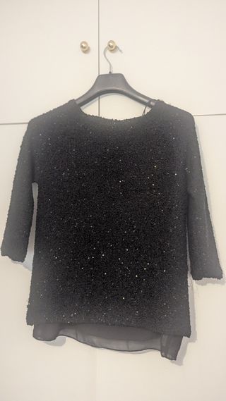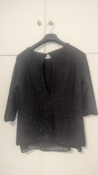 Top Zara fiesta M punto brillos asimétrico