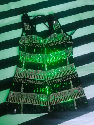 Vestido de fiesta verde con brillos usado una vez.