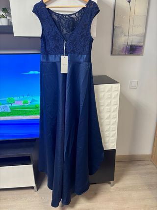 Vestido fiesta largo azul marino talla 42
