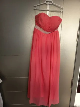 Vestido largo de fiesta en color salmón. Nunca se ha usado. - Diseño sin tirantes. - Detalle de pedrería en la cintura. - Falda larga y fluida.