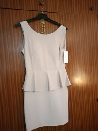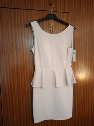 Vestido fiesta peplum beige