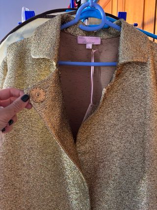 Chaqueta abierta de fiesta con brillos en color negro. Super chula. Sube cualquier outfit. Muy ponible tanto en estilo casual como para fiesta. Se envia. Talla unica. Destaca en tus fiestas. - Diseño abierto. - Manga larga.