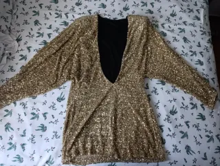 Vestido fiesta lentejuelas dorado