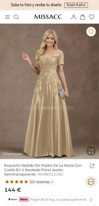 Vestido para celebracion, fiesta, boda y ocasiones especiales, nuevo sin estrenar, color champagne, vuelo y falda interior, esquisitos bordados, comprado en MISSACC (ver captura de pantalla), no quiero cambios solo venta, preferiblemente entrega en mano.