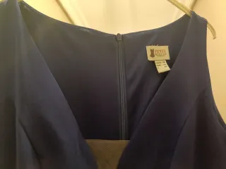 Vestido de fiesta en excelente estado, usado una sola vez. Diseño elegante con detalles cruzados en el escote. - Tejido con acabado brillante. - Corte ceñido al cuerpo. - Escote en V.