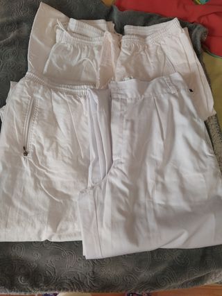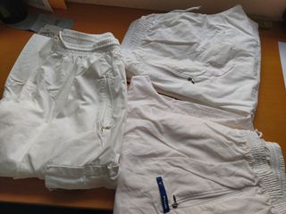 tres de la talla M con gomas,todos con bolsillos de cremallera y uno con otros dos bolsillos grandes otro talla S con botón y cremalleras en los dos bolsillos están nuevos