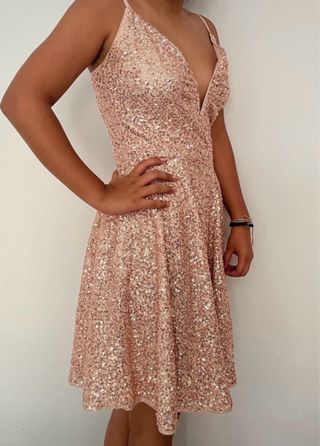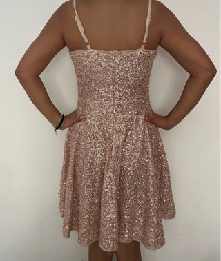 Vestido fiesta lentejuelas rosa oro