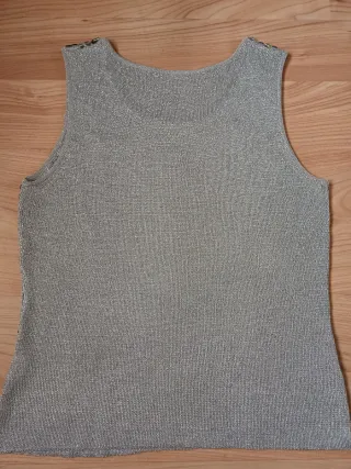 Este top es perfecto para añadir un toque de brillo a tu look de fiesta. Su diseño sin mangas y las lentejuelas plateadas lo hacen ideal. - Diseño sin mangas. - Parte delantera de lentejuelas y espalda de lurex. - Pequeña abertura a los costados
