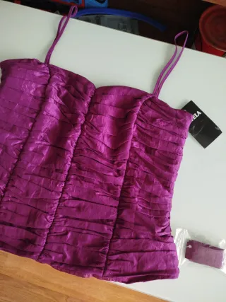 Corpiño de fiesta con un diseño moderno y elegante. Ideal para ocasiones especiales. - Tejido con textura plisada. - Cordones ajustables en los laterales. - Incluye etiqueta.