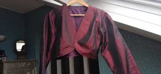 Elegante conjunto de tres piezas para ocasiones especiales. - Chaqueta larga con bordado floral. - Top con manga corta y bordado floral. - Falda larga de satén. Se usó solo un día como traje de madrina. Tiene roces del uso de ese día Solo entrega en zaragoza