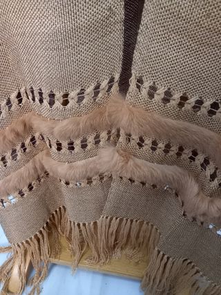 Prenda única. Producto de lujo CALIDAD/PRECIO. SEDA VEGETAL 50% ALGODÓN 50% Hecho en Argentina. NUEVO. SIN ESTRENAR. 90 cms largo pecho y 90 cms largo espalda + 18 cms largo flecos. 100 cms ancho espalda 50 + 50 cms ancho pecho.