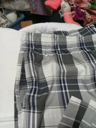 Conjunto de ropa interior de la marca completamente nuevo. - Incluye calcetines y pantalón. - Diseño a cuadros en el pantalón. - Calcetines blancos con detalles. - Talla única.
