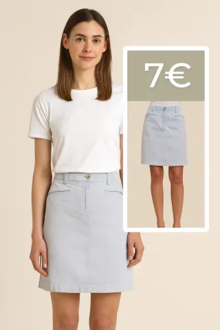 Falda de corte recto en color azul grisáceo - Diseño con bolsillos. - Cierre de botón y cremallera.