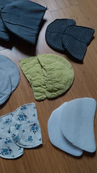 Conjunto de 9 pares de hombreras para ropa. - Hombreras de tela. - Diseño curvo para adaptarse a la prenda. - Variedad de colores y texturas.