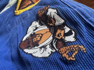 Kimono de Brazilian Jiu Jitsu de la marca Tatami fighwear, talla A1 - Color azul con detalles dorados. - Parches distintivos de la marca.