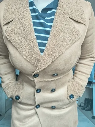 Abrigo de mujer interior borreguito suave, está en perfectas condiciones como nuevo, usado muy pocas veces. Excelente estado de conservación. - Doble botonadura frontal. - Cuello con solapa y forro de borreguito. - Puños con detalle de borreguito. - Bolsillos laterales.