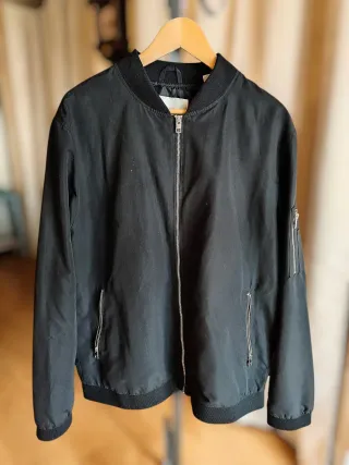 Chaqueta estilo bomber de la marca Jack & Jones. Impecable. Usada en una ocasión. Solo envío. - Cierre de cremallera frontal. - Bolsillos laterales con cremallera. - Puños y bajo elásticos.