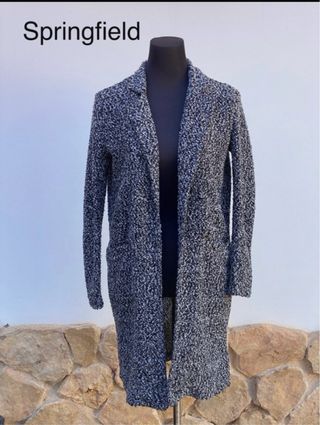 Sobrecamisa de punto de la marca Springfield. - Diseño jaspeado en tonos grises y negros. - Corte largo y abierto. - Bolsillos delanteros.