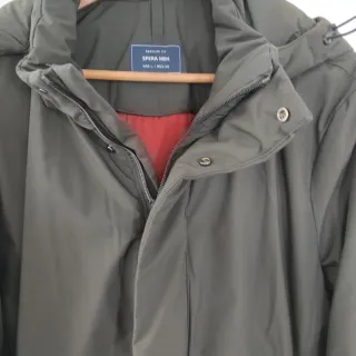 Abrigo de hombre de la marca Sfera en color verde oliva. Ideal para mantenerte abrigado. - Diseño moderno y funcional. - Cierre frontal con cremallera y botones. - Capucha ajustable. - Bolsillos laterales.