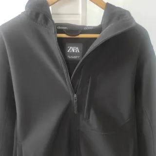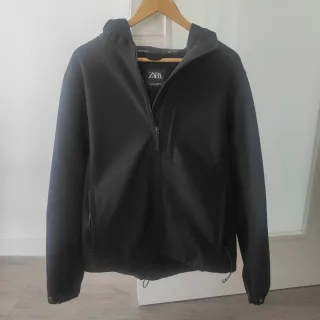 Chaqueta de la marca Zara, modelo Softshell, en color negro. - Cierre de cremallera. - Capucha. - Bolsillos laterales. - totalmente nueva, puesta en dos ocasiones.
