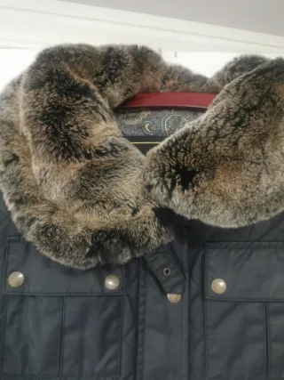 Chaqueta acolchada exterior 100%algodon encerado, con cuello de pelo sintético. interior forro estampado y logo de la marca en manga - Cierre de cremallera y clecs. - Bolsillos frontales con solapa. - Cordón ajustable en la cintura. - Puños con detalle de pelo sintético.