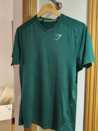 Camiseta deportiva Gymshark en color verde. Diseñada para entrenamientos. - Cuello en V. - Logo de la marca en el pecho. - Tejido técnico.