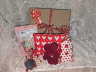 Preciosa caja de regalo temática de San Valentín, ideal para sorprender a alguien especial. Contiene: - Neceser con diseño de corazones blancos sobre fondo rojo. - Mini toalla - Llavero con forma de corazón. - Calcetines - Set de cuidado: mascarilla, bomba de baño... -Bolígrafo -Mini vela -Detalle sorpresa Algunos colores son al azar.