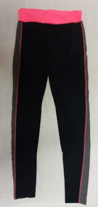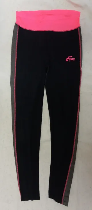 Lote de dos leggings deportivos, uno de la marca Wild Flowers y otro de Decathlon. Perfectos para entrenar. - Legging Wild flowers negro con detalles laterales grises y costuras rosas. Talla L - Cintura alta en color rosa. - Logo de Fitness Club en color rosa en la pierna derecha. - Legging Decathlon gris, negro y burdeos talla XL
