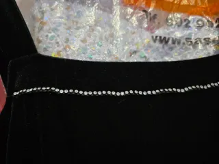 Elegante vestido negro, ideal para fiestas o eventos especiales. Su diseño con tirantes finos y detalles brillantes en los hombros lo hace destacar. - Tejido satinado en la parte superior. - Falda con caída y detalle fruncido. - Tirantes ajustables con adornos. A juego con chaqueta en burdeos