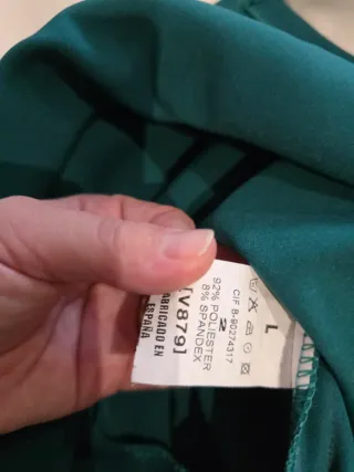 Vestido de fiesta o evento en color verde. Fabricado en España. - Composición: 92% poliéster, 8% spandex. - Talla L.