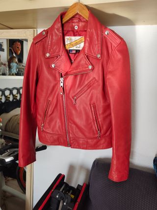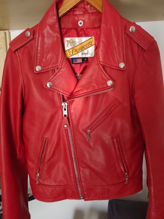 vendo chaqueta de piel de color rojo de la reconocida marca perfecto schoot,es original y esta en muy buen estado,es de muy buena calidad la piel es muy suave y muy comoda,como se puede ver en la ultima foto su precio es de 369 euros,yo la dejo por menos de la mitad. - Diseño clásico. - Cierre frontal con cremallera. - Bolsillos con cremallera.
