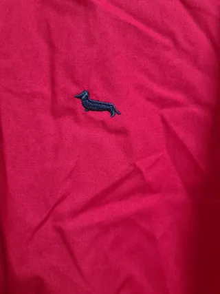 Camisa de manga larga de la marca Harmony. - Color rojo vibrante. - Cuello de camisa con botones. - Pequeño bordado de un perro salchicha en el pecho. Puesta 1 vez