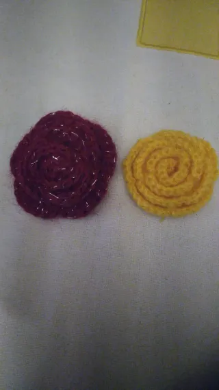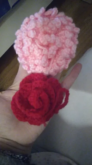 Preciosas flores hechas a mano con ganchillo. - Flor rosa con textura abullonada. - Flor roja con forma de rosa. - Ideales para decorar o como accesorio. Flores realizadas a crochet. Para adornar ropa, pelo... Si quieres un ramo de flores también. Dime de qué color las quieres 7€ la unidad. Pero si quieres un ramo, consulta el precio