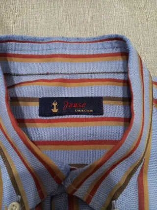 Camisa de caballero con un diseño de alta calidad color azul y rayas burdeos marca jause collection prácticamente nueva vendo en 10 euros - Cuello abotonado. - Bolsillo en el pecho. - Puños abotonados.