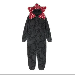 Pijama con diseño inspirado en el Demogorgon de Stranger Things. Ideal para fans de la serie. - Diseño de cuerpo entero. - Capucha con detalles del personaje. - Estampado de ramas en toda la prenda.