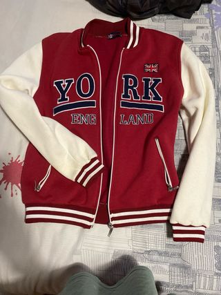 Cazadora bomber de la marca Pull&Bear en color rojo. - Cierre de cremallera. - Bolsillo en la manga con cremallera. - Puños y bajo elásticos.