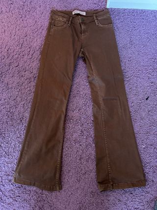 Vaqueros de campana de la marca Bershka en color marrón. Un básico para tu armario. - Corte acampanado. - Diseño de cuatro bolsillos. - Cierre de cremallera y botón.