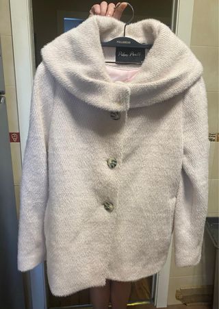Bonito abrigo de la marca Pilar Prieto en color rosa clarito. Un diseño elegante y acogedor. - Cierre con botones. - Cuello amplio y envolvente. - Tejido suave y con textura.
