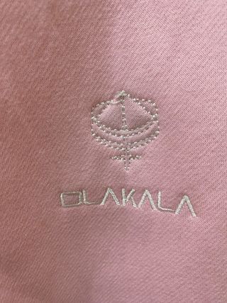 Sudadera de color rosa con un diseño bordado. - Logo de la marca OLAKALA bordado. - Detalle de bordado superior.