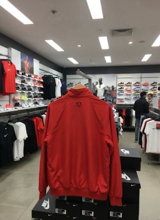 Chaqueta deportiva de color rojo con el escudo del Arsenal. Marca Nike. - Diseño con cremallera frontal. - Cuello alto. - Logo de Fly Emirates. - Escudo del Arsenal.